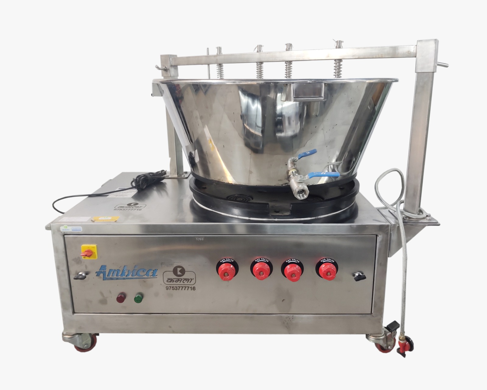 Gas Burners: Equipped with two efficient gas burners, the machine provides rapid and uniform heating, essential for achieving the perfect consistency in your Mawa / Khowa.